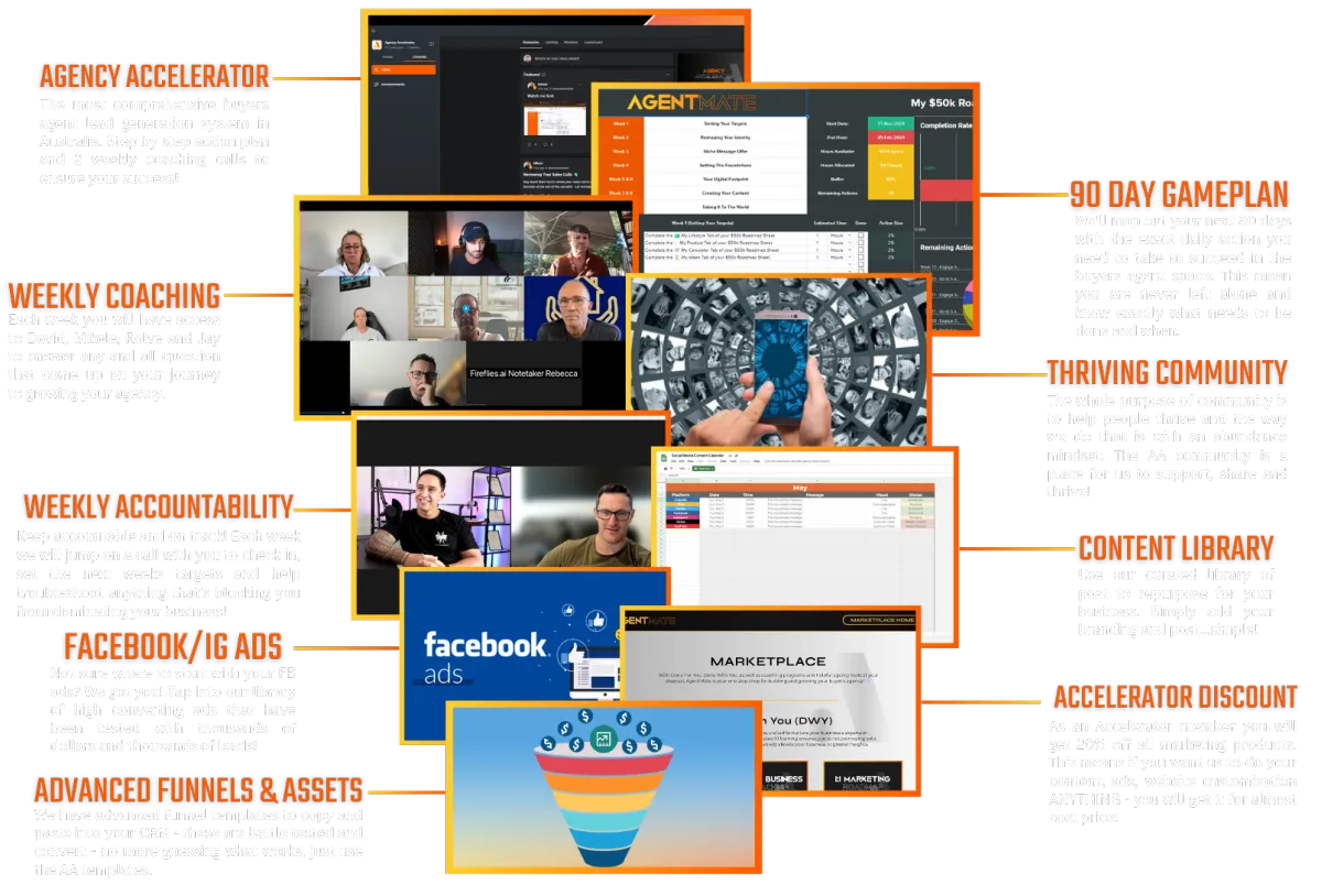 Your AgentMate membership is software and basic training, the Agency Accelerator is your personalised marketing and coaching team building your business WITH you! It's the ultimate business growth system!